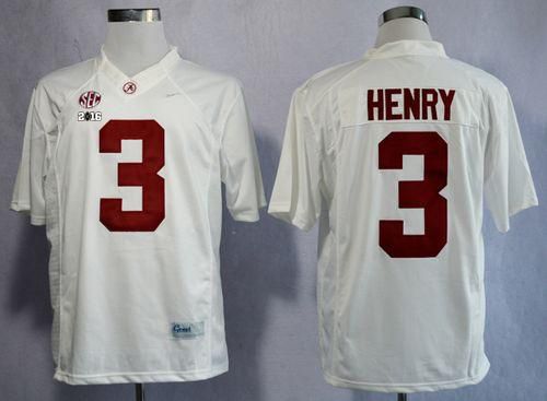 Crimson Tide #3 Derrick Henry White Limited 2016 College Football Playoff National Championship Patch Stitched NCAA Jersey