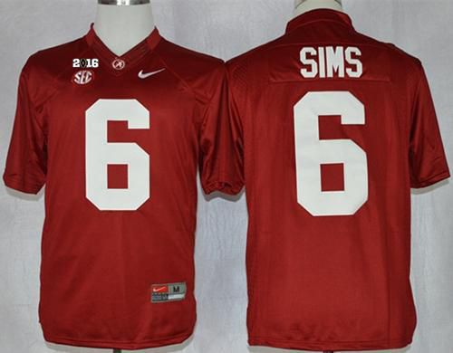 Crimson Tide #6 Blake Sims Red Limited 2016 College Football Playoff National Championship Patch Stitched NCAA Jersey