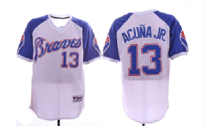 Men's Atlanta Braves #13 Ronald Acuna Jr. White 1974 Turn Back the Clock Jersey