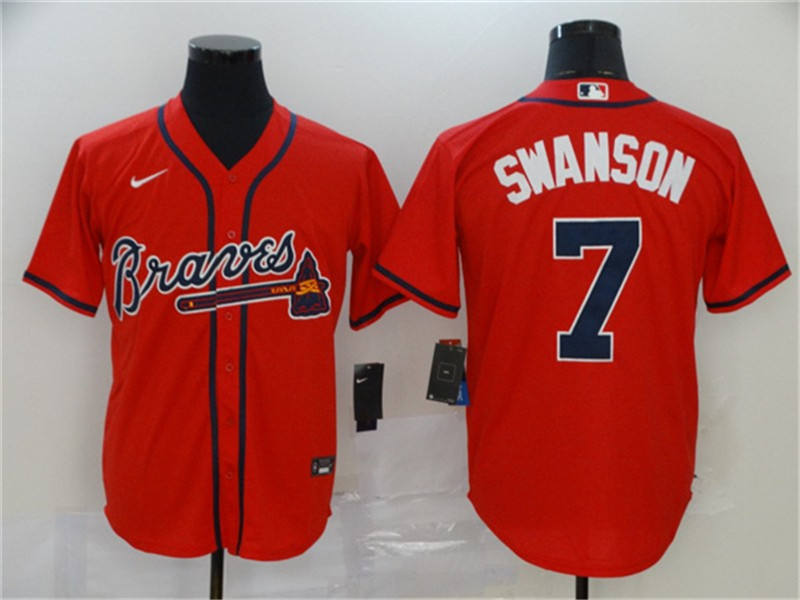 Men's Atlanta Braves #7 Dansby Swanson Red Cool Base Stitched MLB Jersey