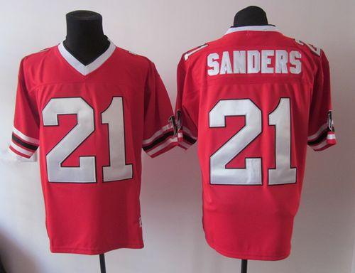 Mitchell And Ness Falcons #21 Deion Sanders Red Throwback Stitched NFL Jersey