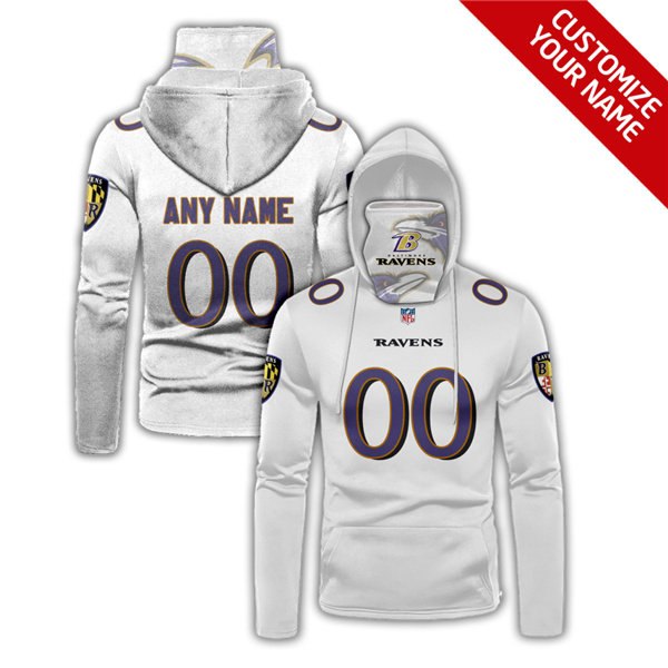 Men's Baltimore Ravens 2020 White Customize Hoodie Mask