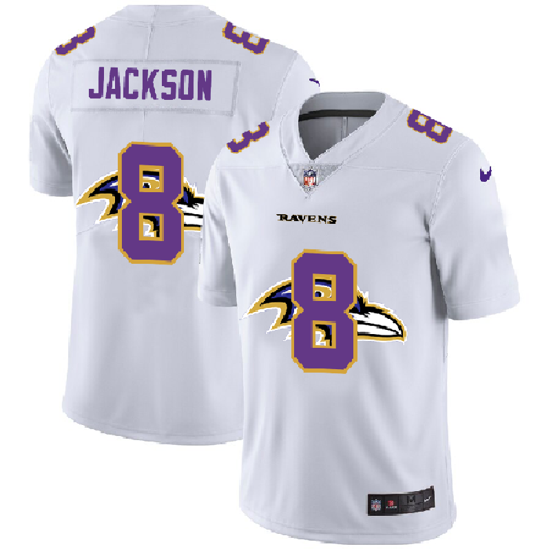 Men's Baltimore Ravens #8 Lamar Jackson White Shadow Logo Limited Stitched Jersey