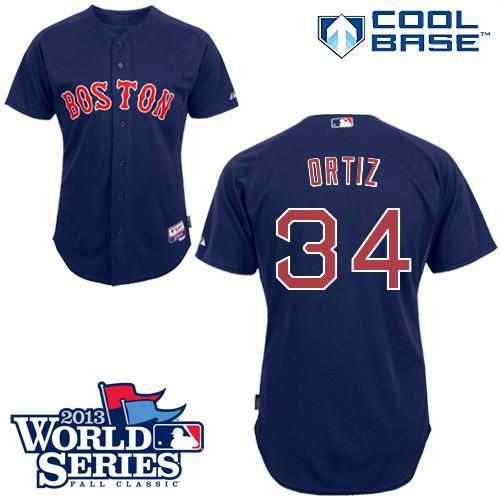 Red Sox #34 David Ortiz Dark Blue Cool Base 2013 World Series Patch Stitched MLB Jersey