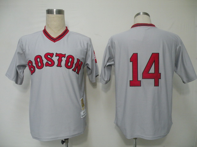 Mitchell and Ness Red Sox #14 Jim Rice Grey Stitched Throwback MLB Jersey