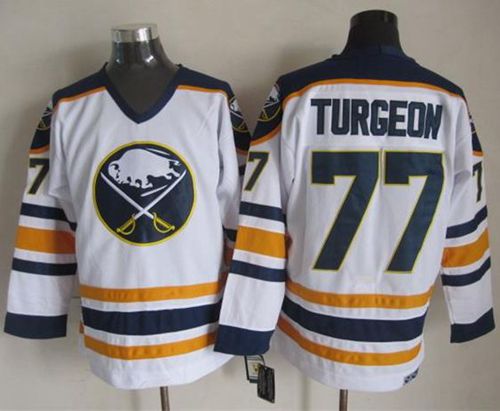 Sabres #77 Pierre Turgeon White CCM Throwback Stitched NHL Jersey