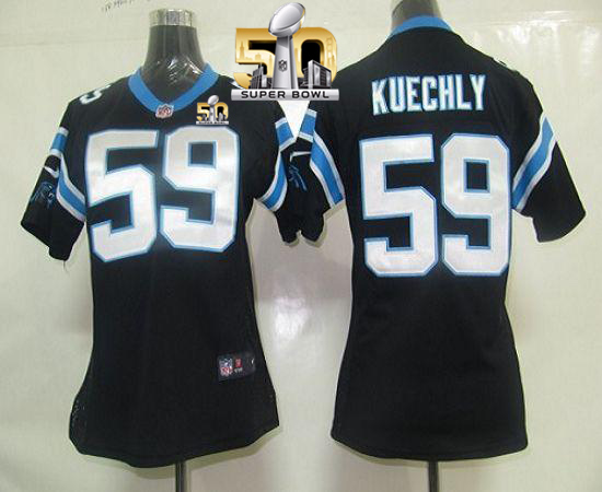 Nike Panthers #59 Luke Kuechly Black Team Color Super Bowl 50 Women's Stitched NFL Elite Jersey