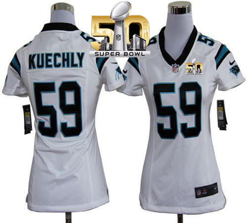 Nike Panthers #59 Luke Kuechly White Super Bowl 50 Women's Stitched NFL Elite Jersey