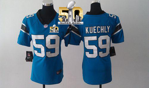 Nike Panthers #59 Luke Kuechly Blue Alternate Super Bowl 50 Women's Stitched NFL Elite Jersey