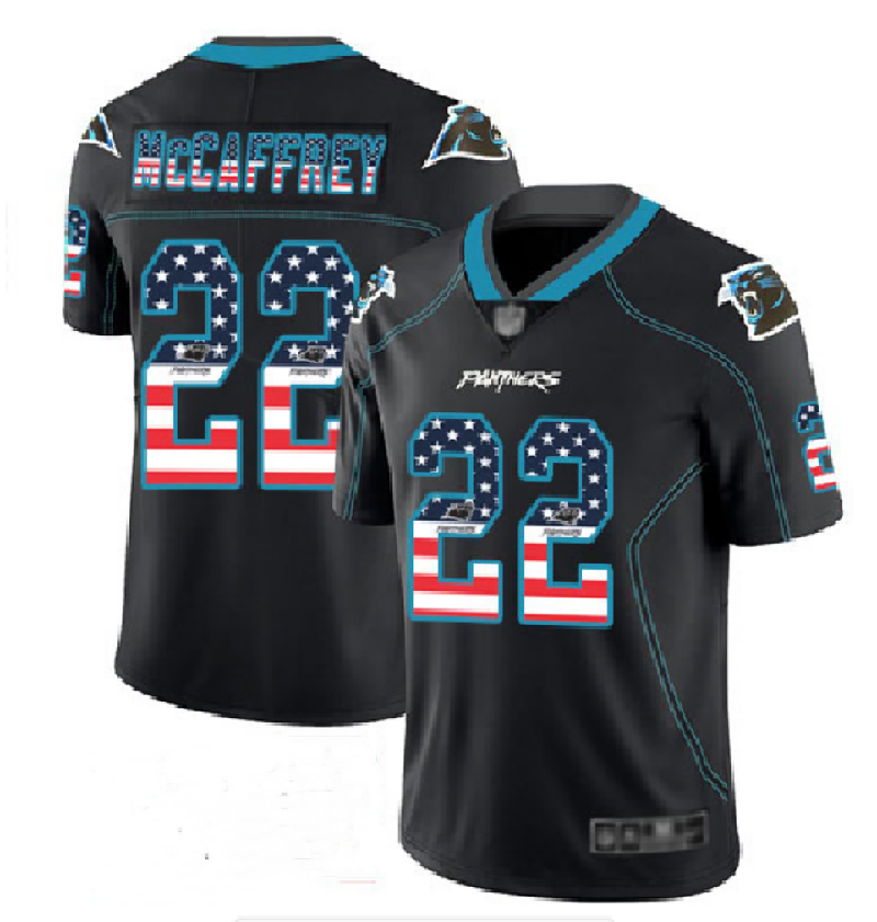 Men's Carolina Panthers #22 Christian McCaffrey Black USA Flag Color Rush Limited Fashion NFL Jersey