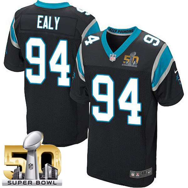 Nike Panthers #94 Kony Ealy Black Team Color Super Bowl 50 Men's Stitched NFL Elite Jersey