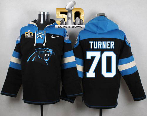 Nike Panthers #70 Trai Turner Black Super Bowl 50 Player Pullover NFL Hoodie