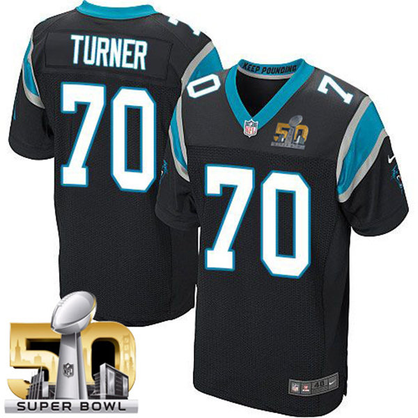 Nike Panthers #70 Trai Turner Black Team Color Super Bowl 50 Men's Stitched NFL Elite Jersey