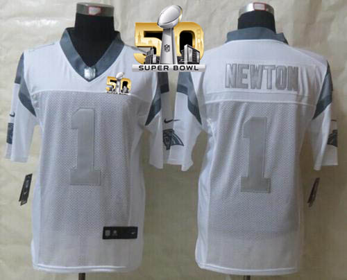 Nike Panthers #1 Cam Newton White Super Bowl 50 Men's Stitched NFL Limited Platinum Jersey