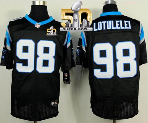 Nike Panthers #98 Star Lotulelei Black Team Color Super Bowl 50 Men's Stitched NFL Elite Jersey