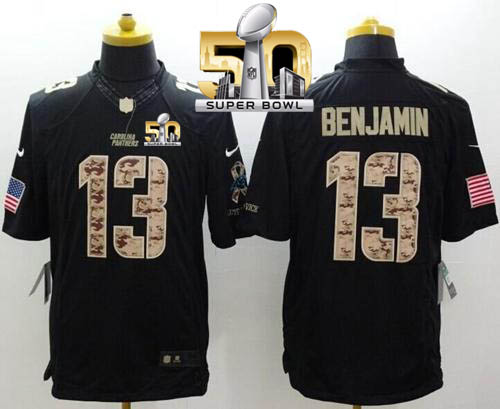 Nike Panthers #13 Kelvin Benjamin Black Super Bowl 50 Men's Stitched NFL Limited Salute to Service Jersey