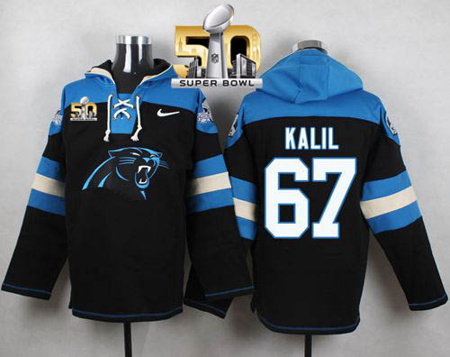 Nike Panthers #67 Ryan Kalil Black Super Bowl 50 Player Pullover NFL Hoodie