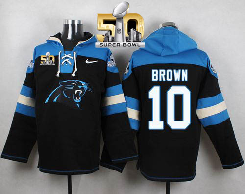 Nike Panthers #10 Corey Brown Black Super Bowl 50 Player Pullover NFL Hoodie