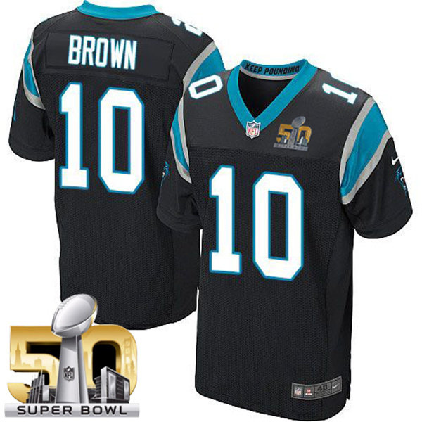 Nike Panthers #10 Corey Brown Black Team Color Super Bowl 50 Men's Stitched NFL Elite Jersey