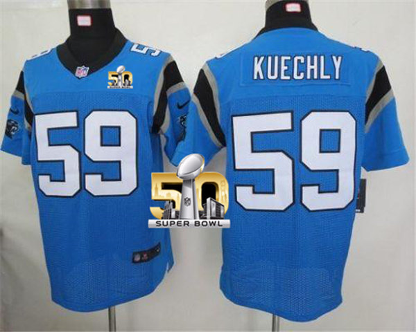 Nike Panthers #59 Luke Kuechly Blue Alternate Super Bowl 50 Men's Stitched NFL Elite Jersey
