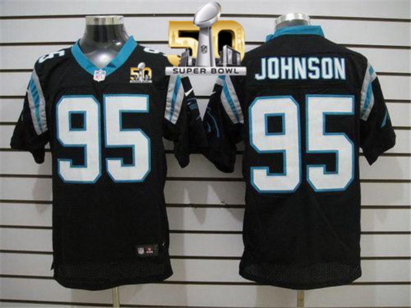 Nike Panthers #95 Charles Johnson Black Team Color Super Bowl 50 Men's Stitched NFL Elite Jersey
