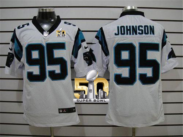 Nike Panthers #95 Charles Johnson White Super Bowl 50 Men's Stitched NFL Elite Jersey