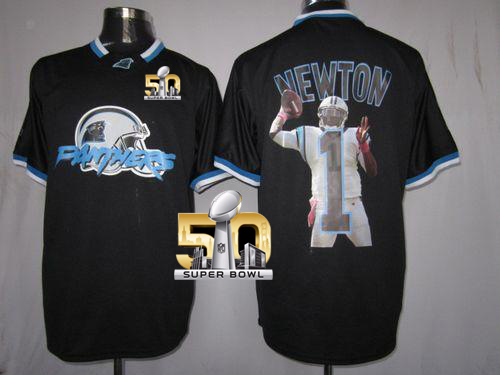 Nike Panthers #1 Cam Newton Black Super Bowl 50 Men's NFL Game All Star Fashion Jersey