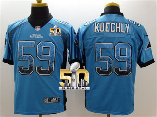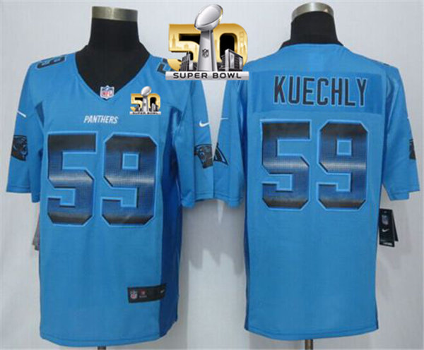 Nike Panthers #59 Luke Kuechly Blue Alternate Super Bowl 50 Men's Stitched NFL Elite Drift Fashion Jersey
