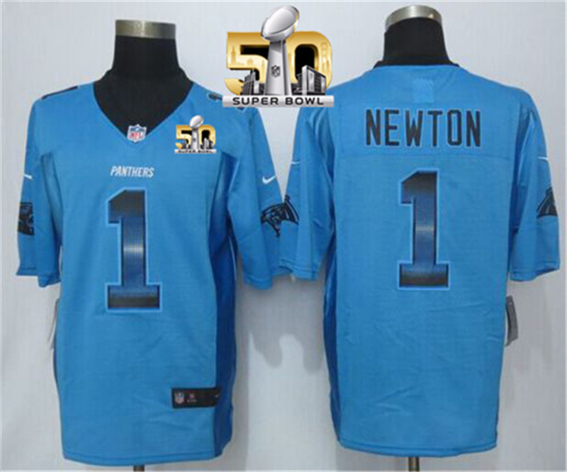 Nike Panthers #1 Cam Newton Blue Alternate Super Bowl 50 Men's Stitched NFL Limited Strobe Jersey
