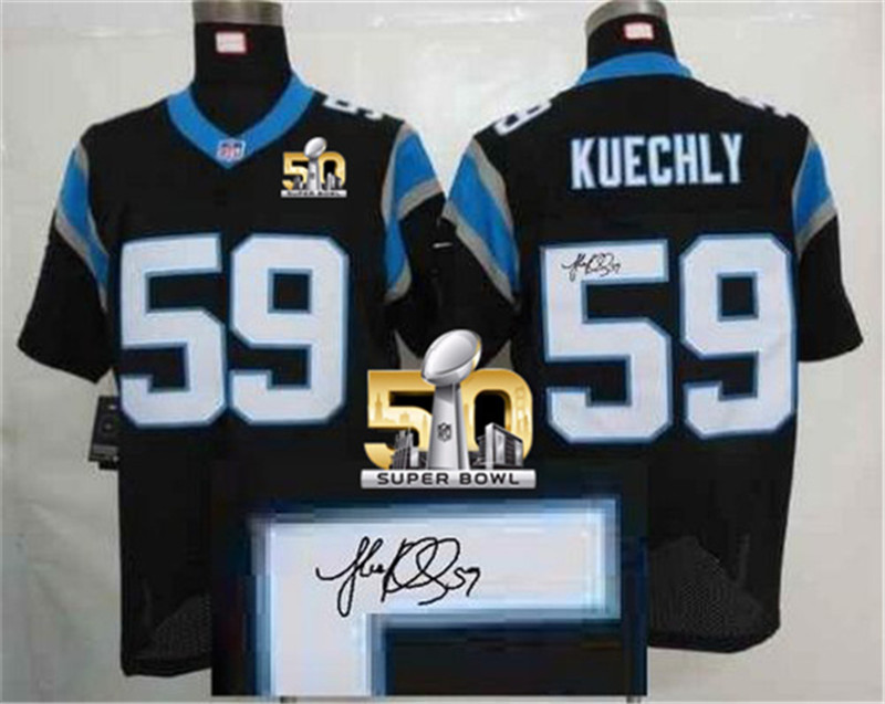 Nike Panthers #59 Luke Kuechly Black Team Color Super Bowl 50 Men's Stitched NFL Elite Autographed Jersey