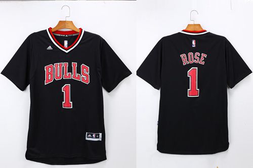 Bulls #1 Derrick Rose Black Short Sleeve Stitched NBA Jersey