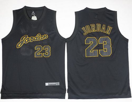 Bulls #23 Michael Jordan Black(Gold No.) Anniversary Stitched NBA Jersey