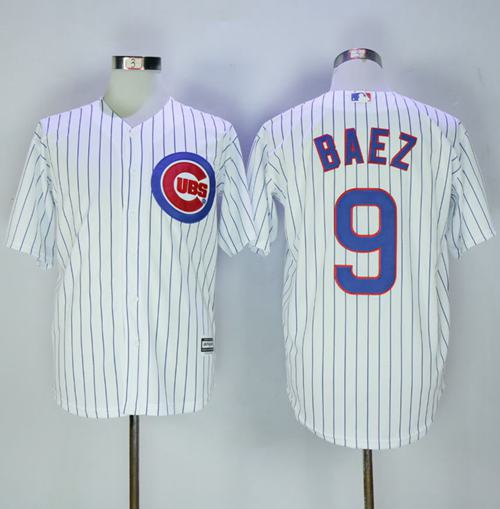 Cubs #9 Javier Baez White(Blue Strip) New Cool Base Stitched MLB Jersey
