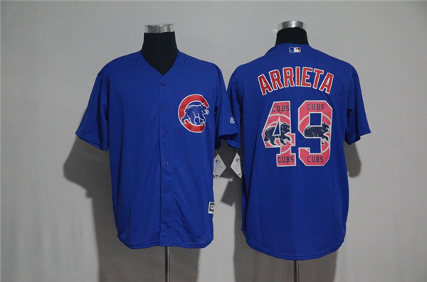Men's Chicago Cubs #49 Jake Arrieta Blue Team Logo Print Cool Base Stitched MLB Jersey