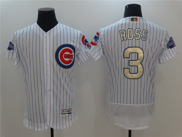 Men's Chicago Cubs #3 David Ross White 2017 Gold Program Flexbase Stitched MLB Jersey