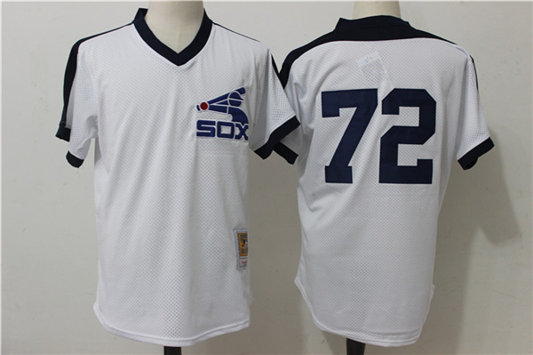 Men's Chicago White Sox #72 Carlton Fisk Mitchell & Ness White Cooperstown Mesh Batting Practice Stitched MLB Jersey