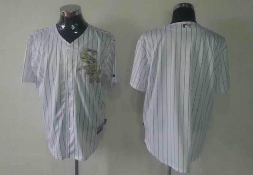 White Sox Blank White(Black Strip) USMC Cool Base Stitched MLB Jersey