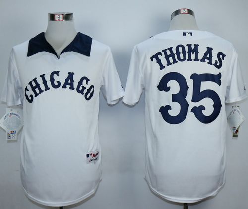 White Sox #35 Frank Thomas White(Black Strip) Cooperstown Stitched MLB Jersey