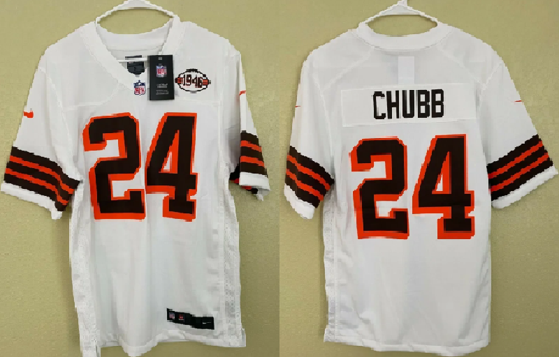 Men's Cleveland Browns #24 Nick Chubb White 1946 throwback Stitched Jersey