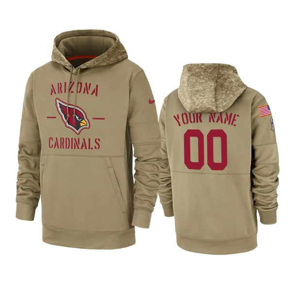 Men's Arizona Cardinals Customized Tan 2019 Salute To Service Sideline Therma Pullover Hoodie