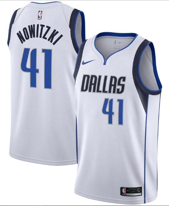 Men's Dallas Mavericks #41 Dirk Nowitzki White Association Edition Swingman Stitched Jersey