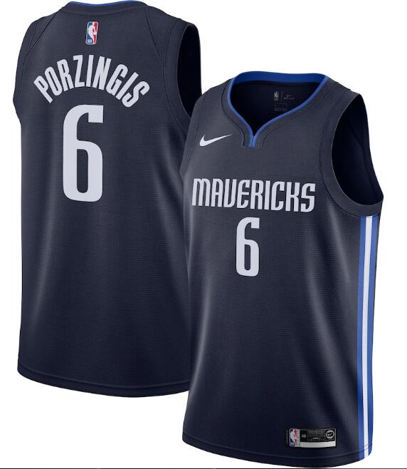 Men's Dallas Mavericks #6 Kristaps Porzingis Navy Statement Edition Stitched Jersey