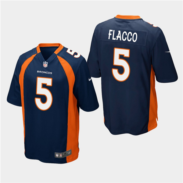 Men's Denver Broncos #5 Joe Flacco Navy 2019 NFL Draft Game Jersey
