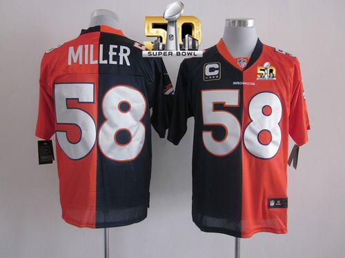 Nike Broncos #58 Von Miller Orange/Navy Blue Super Bowl 50 Men's Stitched NFL Elite Split Jersey