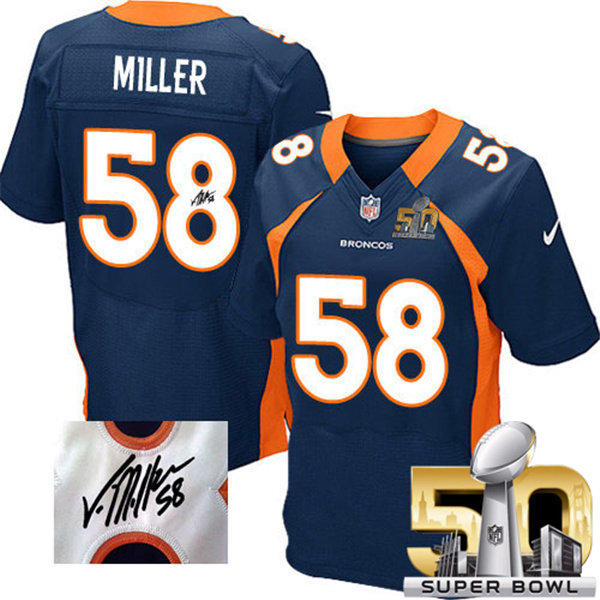 Nike Broncos #58 Von Miller Navy Blue Alternate Super Bowl 50 Men's Stitched NFL Elite Autographed Jersey