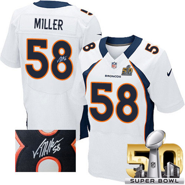 Nike Broncos #58 Von Miller White Super Bowl 50 Men's Stitched NFL Elite Autographed Jersey