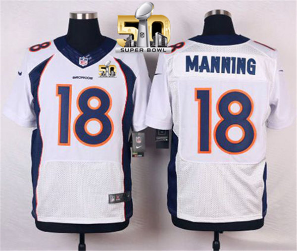 Nike Broncos #18 Peyton Manning White Super Bowl 50 Men's Stitched NFL New Elite Jersey