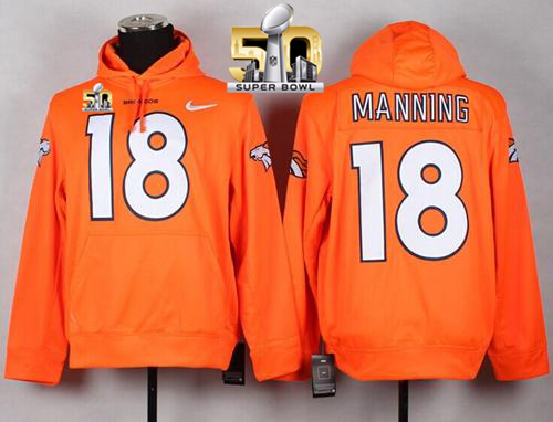 Denver Broncos #18 Peyton Manning Orange Super Bowl 50 NFL Pullover Hoodie