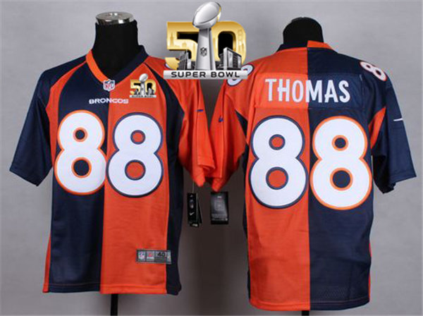 Nike Broncos #88 Demaryius Thomas Orange/Navy Blue Super Bowl 50 Men's Stitched NFL Elite Split Jersey