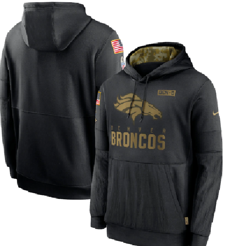Men's Denver Broncos 2020 Black Salute to Service Sideline Performance Pullover Hoodie